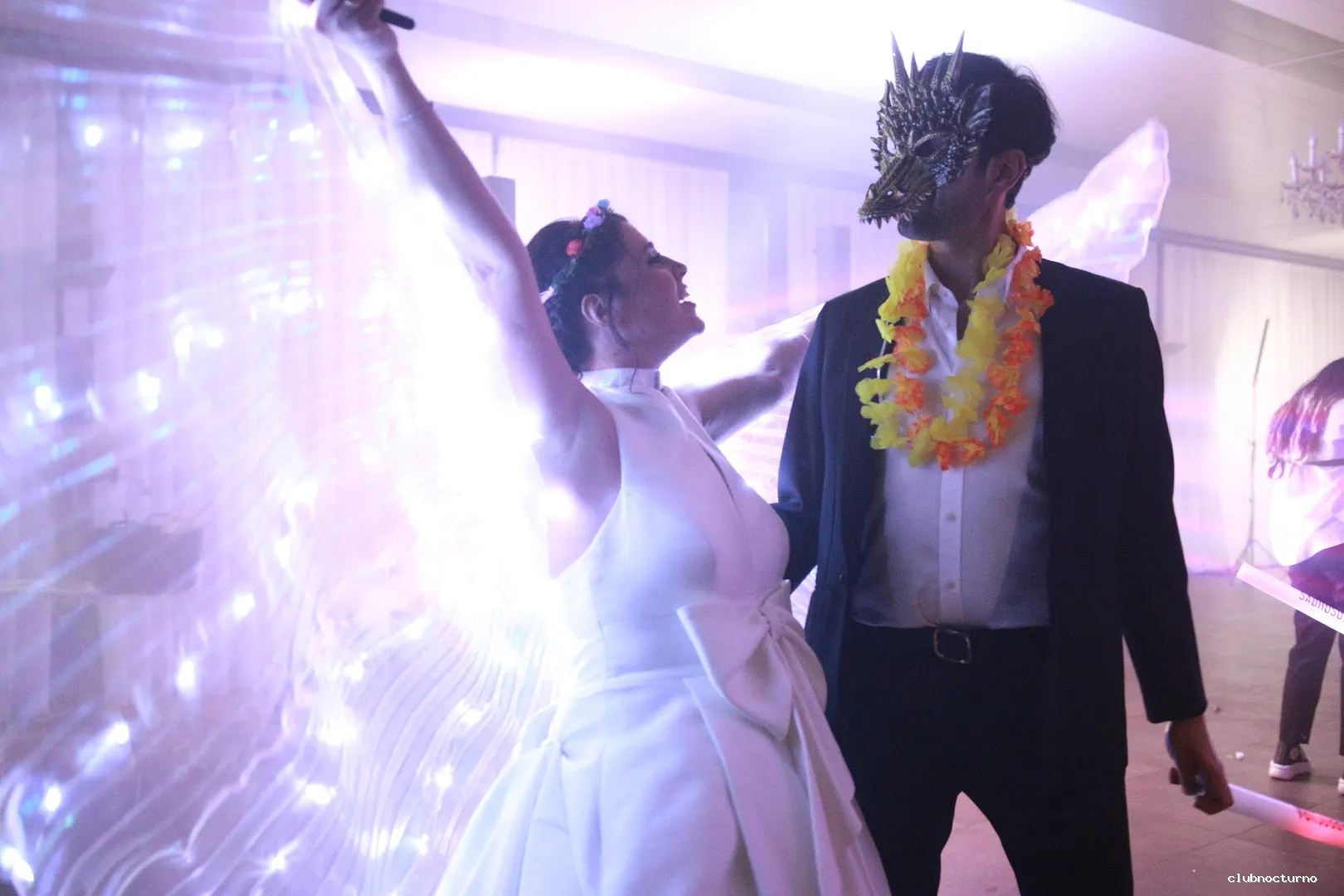Los aspectos que más destacan los testimonios son la música y la animación. Como DJ, Xavi selecciona la música adecuada para cada momento, manteniendo la pista de baile llena durante toda la noche y creando transiciones entre momentos emotivos y festivos. Además, propone actividades como coreografías, bingo musical, juegos de baile, fotomatón de espejo, fotomatón de aro, 360 °, luces y hielo seco, que convierten la celebración en una fiesta continua. La interacción constante con los invitados, la capacidad de leer el ambiente y la entrega de sorpresas hacen que los asistentes recuerden la boda como “el mejor fiestón”.
