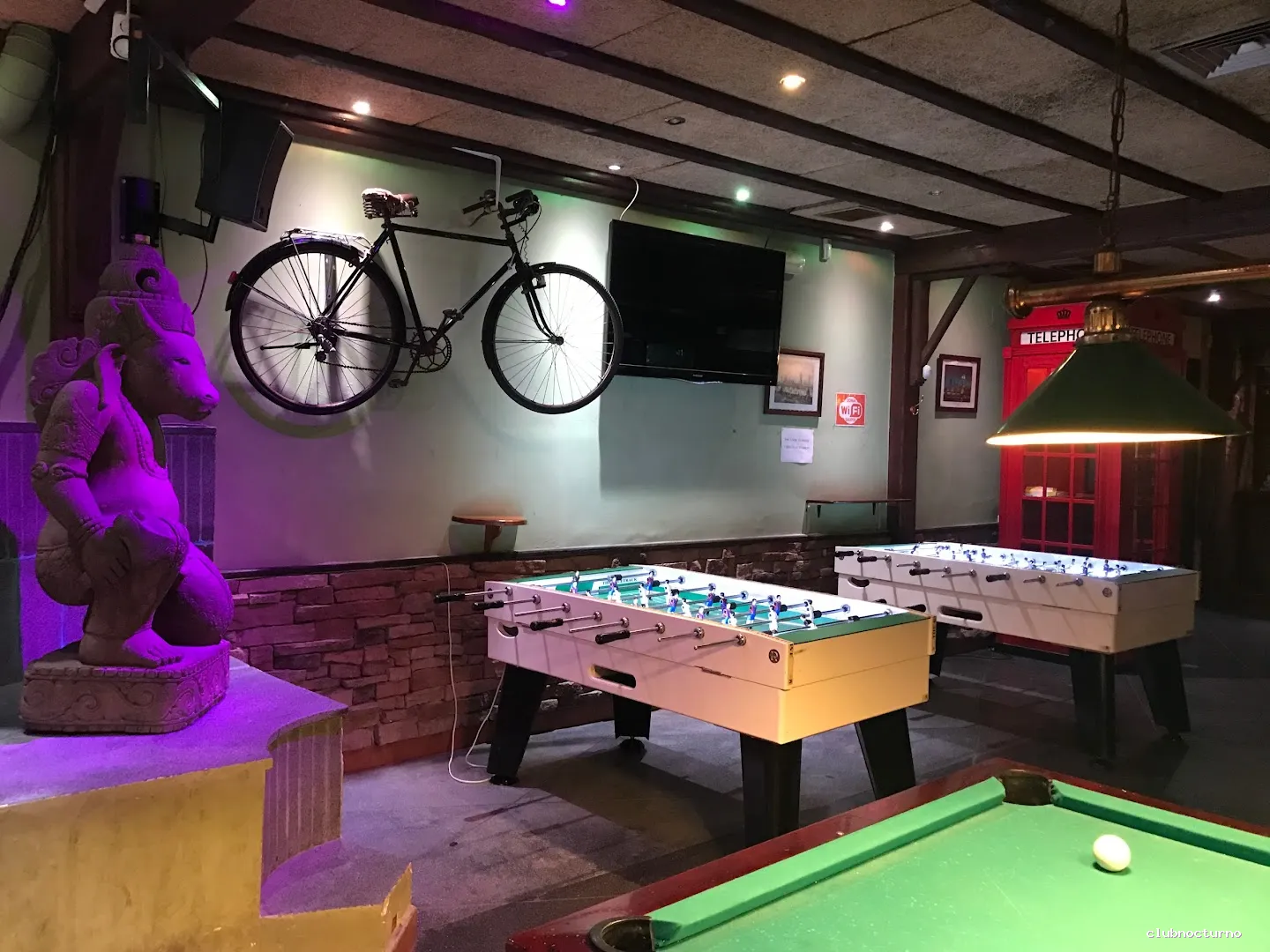 En cuanto al entorno, la terraza se menciona con frecuencia como “espectacular” y “inspirada en Buda y la calma”, ofreciendo un lugar agradable tanto para tomar una copa como para conversar. El interior del pub también recibe elogios por su “decoración espectacular” y por la reforma reciente que, según los clientes, ha mejorado tanto el aspecto visual como el ambiente del local. La oferta de ocio incluye billar, futbolín y dardos, actividades que los clientes disfrutan mientras escuchan música de “todo tipo” o actuaciones en directo. La programación de grupos musicales en un escenario bien situado y la variedad de eventos hacen que el local sea visto como un “ambientazo” ideal para noches de marcha o encuentros más tranquilos.