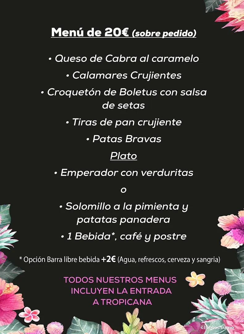Local amplio y con terraza donde se puede cenar un menú cerrado por 25€. entrada a la discoteca incluida sin consumición (12€ en puerta con 2 consumiciones). La comida deja mucho que desear por su calidad, eso si, toda la bebida q puedas tomar esta incluida. Servicio despistado y a su bola.