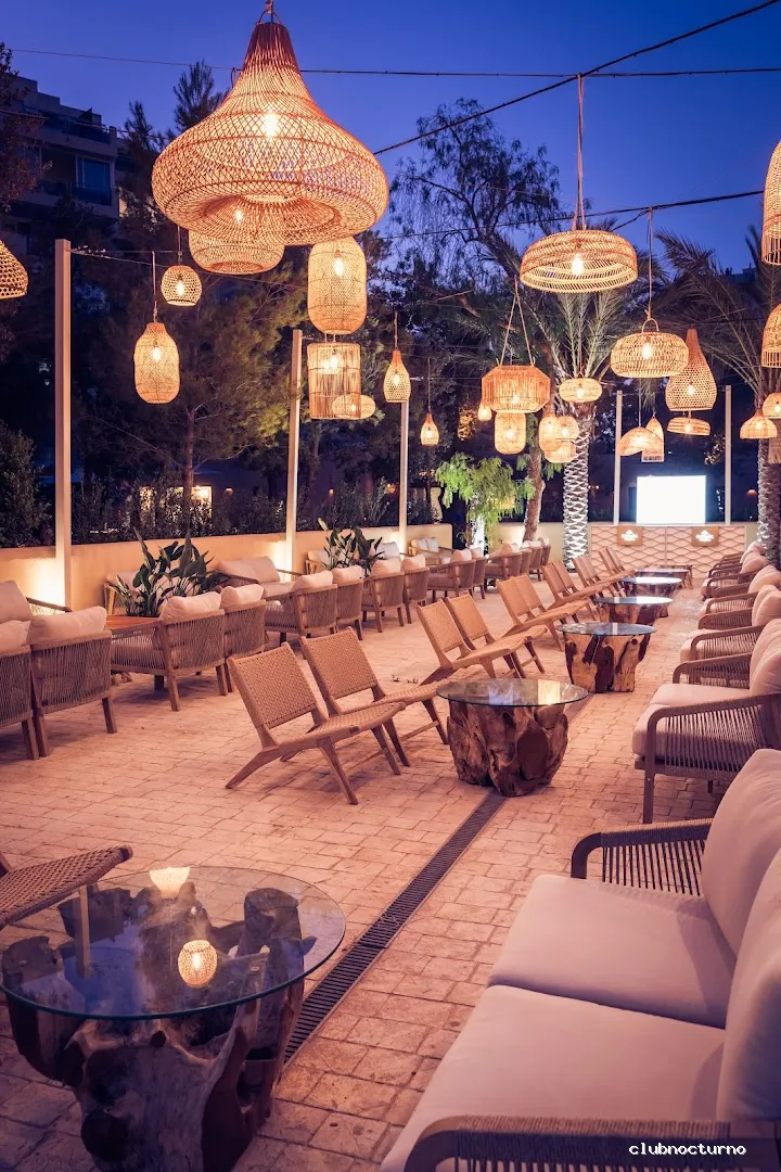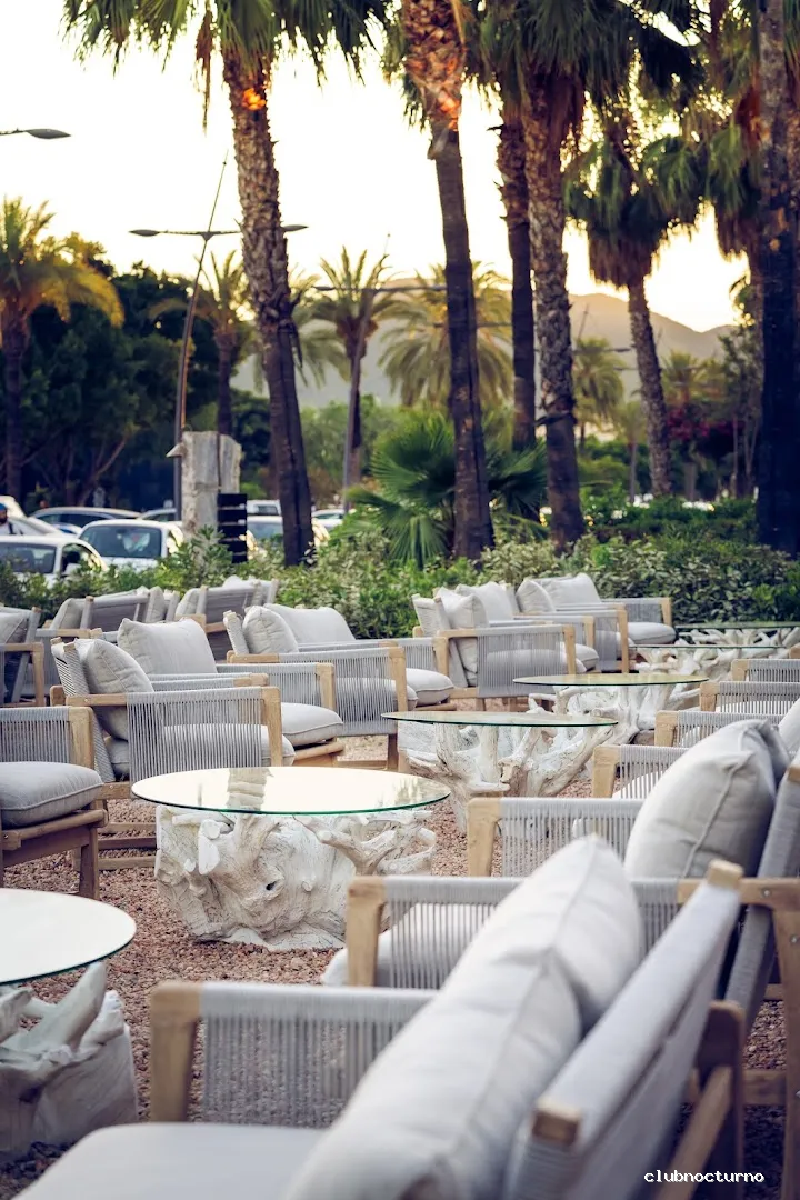 Emblemática discoteca de la noche ibicenca con sesiones de house provista de tres barras, terraza y jardín .