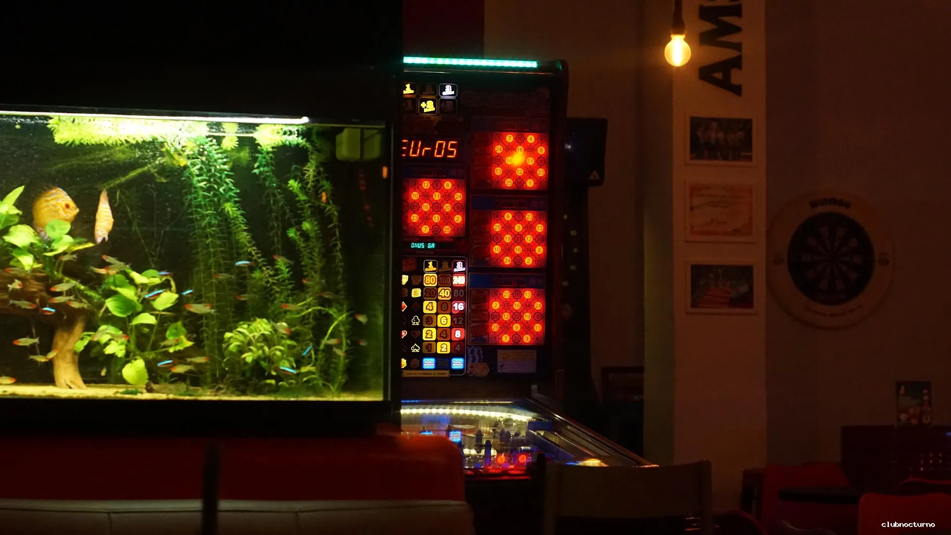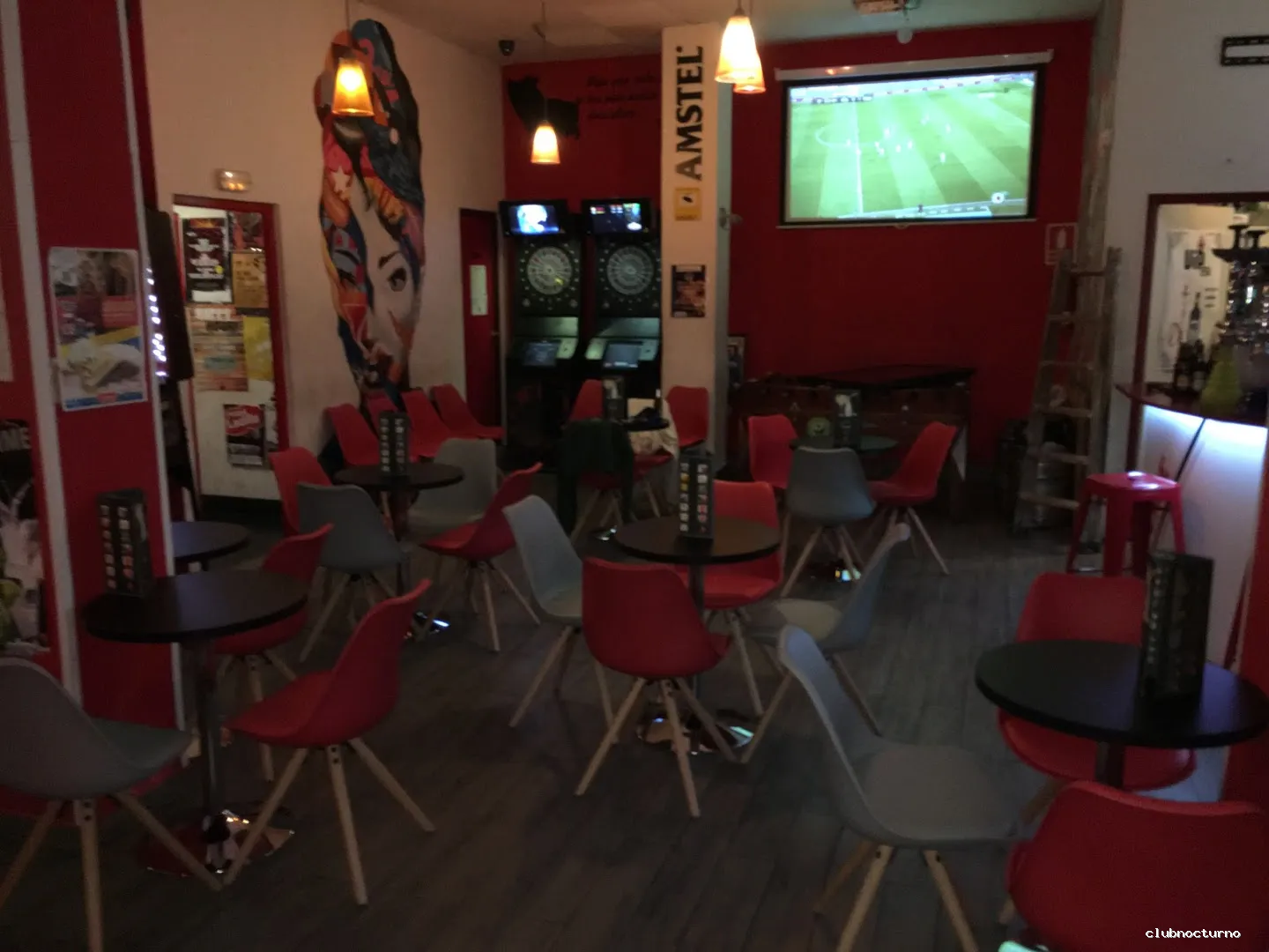 Cócteles, comida de bar y narguiles en un pub animado con murales modernos y una máquina de pinball.