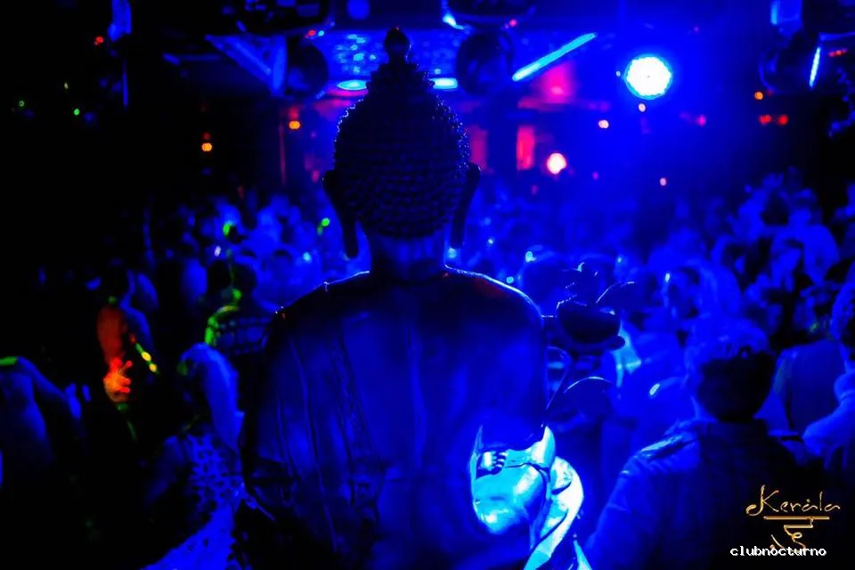 Figuras de dioses y motivos orientales ambientan esta discoteca de música variada y fiestas temáticas.