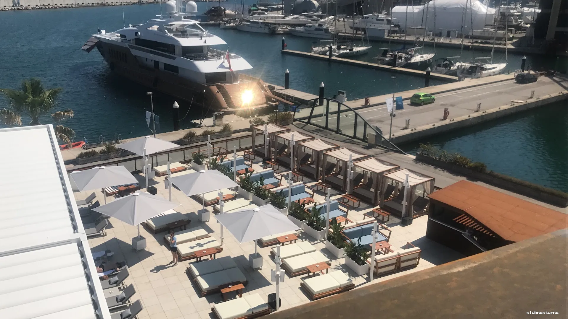 Los comentarios negativos son escasos pero relevantes. Algunos clientes señalan que la piscina cierra temprano (alrededor de 20‑21 h) y que la falta de sillas o asientos en el área de la piscina limita la comodidad. El aparcamiento en el muelle se considera caro (cerca de 5 € por hora) y se sugiere añadir más nebulizadores para contrarrestar el calor intenso durante los eventos de alta afluencia. Aun así, la organización de grandes fiestas, como la del Circuit, es elogiada por su gestión eficaz de la multitud y la disponibilidad de puntos de bebida.