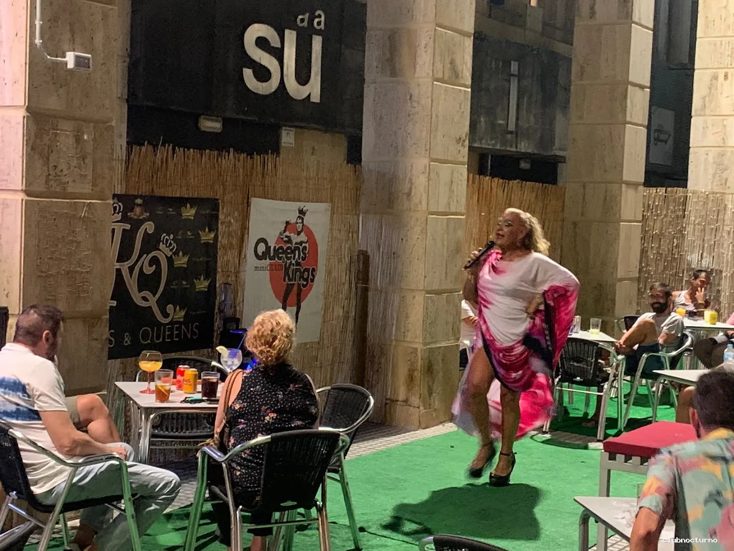 Algunos clientes destacan la calidad de las actuaciones en vivo, como los shows de drag, que son considerados divertidos y entretenidos. La música también es mencionada como un punto fuerte del local, con clientes que destacan la variedad de géneros y la posibilidad de solicitar canciones. Sin embargo, algunos clientes mencionan la necesidad de mejorar la limpieza y la organización del local, así como la falta de actuaciones de algunos artistas que ya no se presentan en el bar. A pesar de estas sugerencias, la mayoría de los clientes se sienten satisfechos con su experiencia en el Bar Kings & Queens y lo recomiendan como un lugar seguro y divertido para pasar la noche.