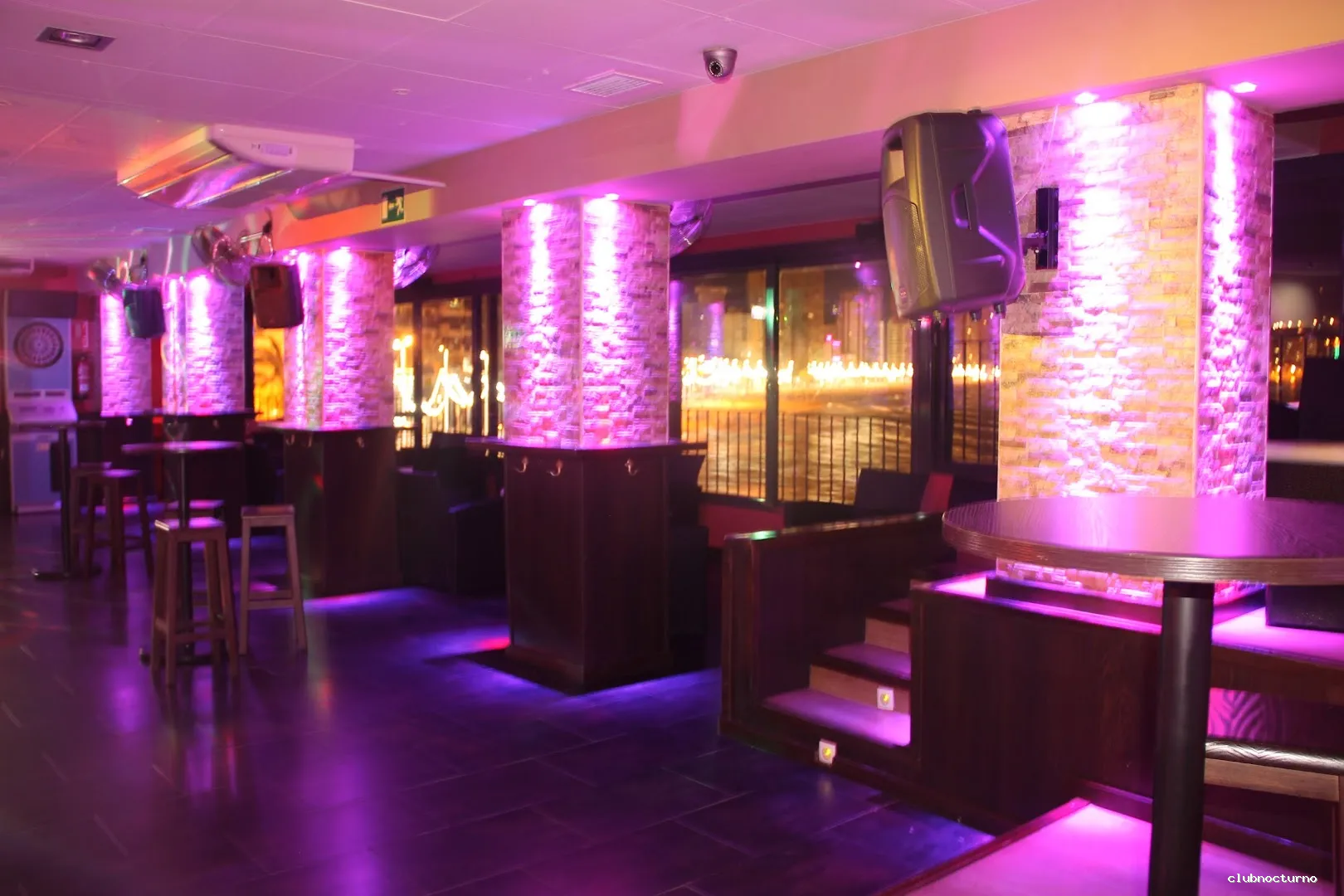 Luces rosas ambientan una moderna discoteca de ambiente joven con reservados y vistas panorámicas de la playa.