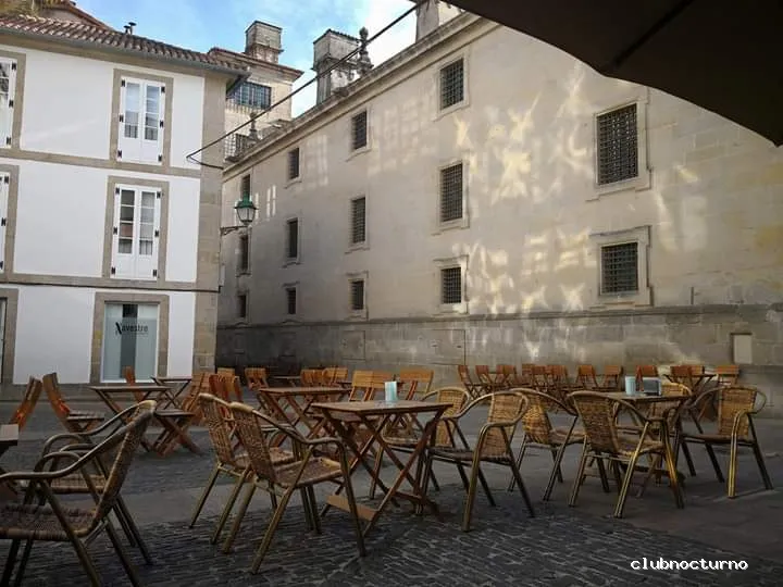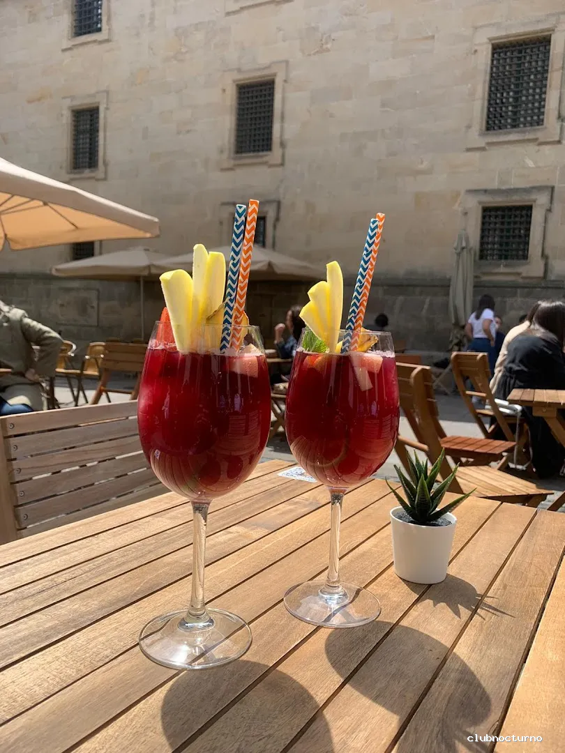 Local con servicio de terraza y zona interior de baile. Zona de encuentro de gente local, turista y peregrino. Amplio horario. Coctelería, gin tonic, sesión vermú, tardeos, terraceo, baile, fiesta, cumpleaños, despedidas, bodas y todo lo que necesites en tu tiempo de ocio y fiesta. A los pies de la catedral, muy cerca de la plaza de abastos en una plaza tranquila y con encanto.