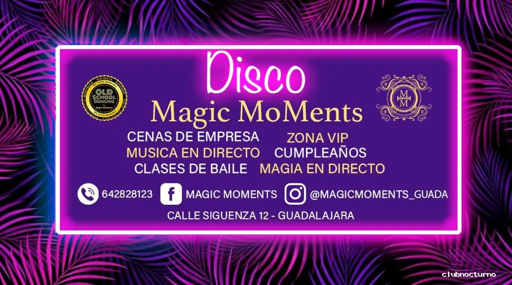 Discoteca Magic MoMents ofrece un servicio de bebidas alcohólicas y cervezas 100% originales y un trato muy agradable aparte de eso una salá de sueños donde puedes crear tus propios momentos magicos , actuaciones en directo , conciertos ,fiestas con musica electrónica, latina, retro y mucho mas , acompañado con actuaciones de magia en directo.