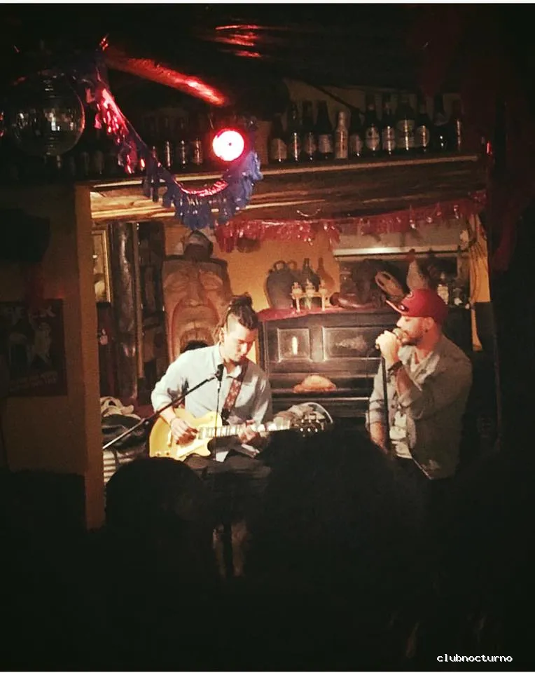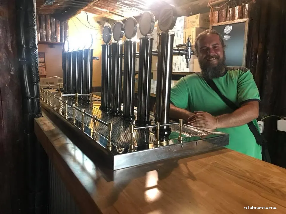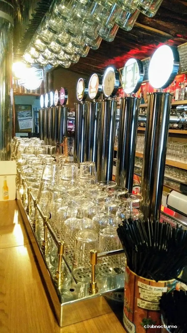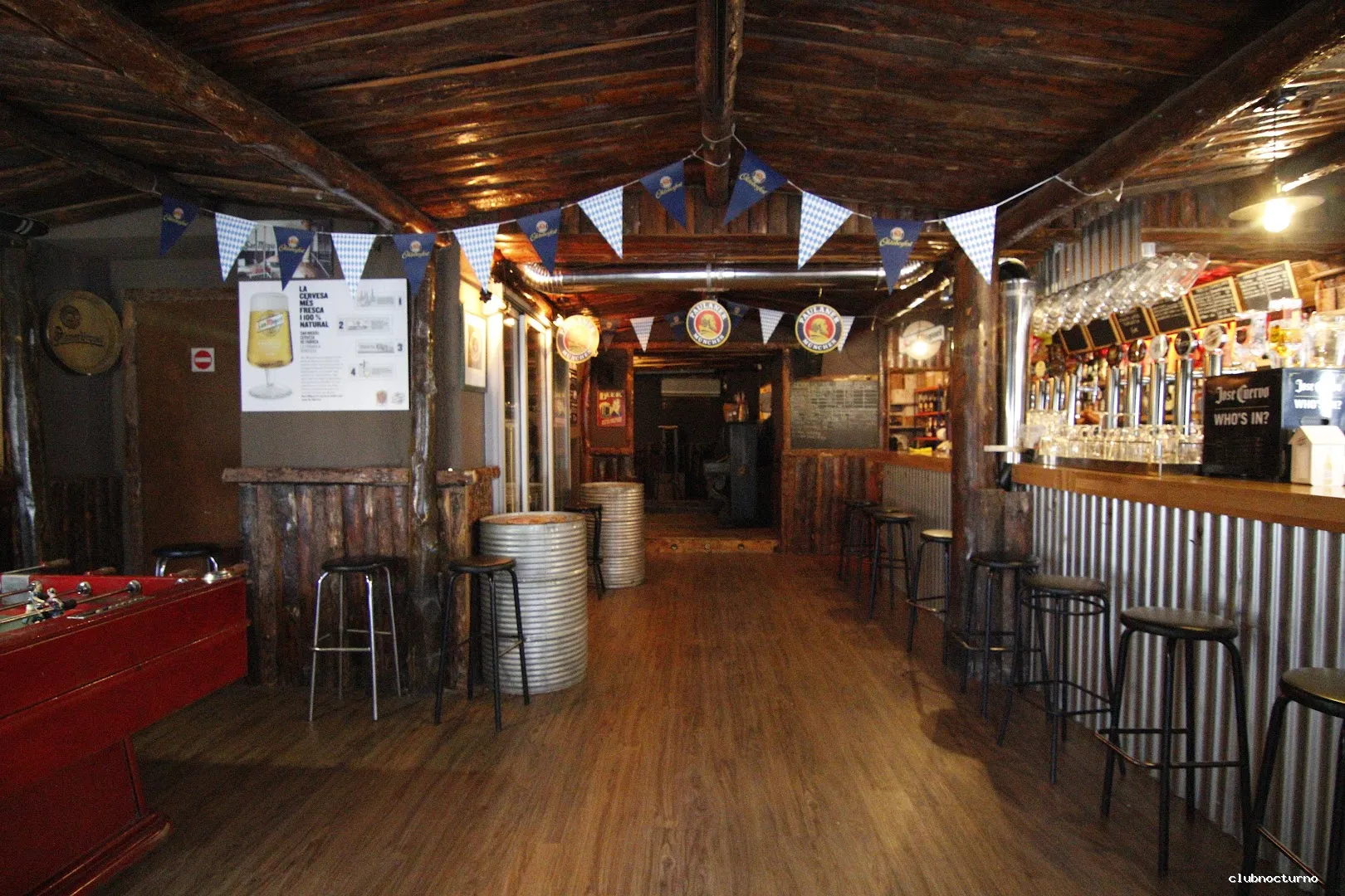 Cervezas y copas en casa antigua decorada como una cabaña de monte con actuaciones cómicas y conciertos.
