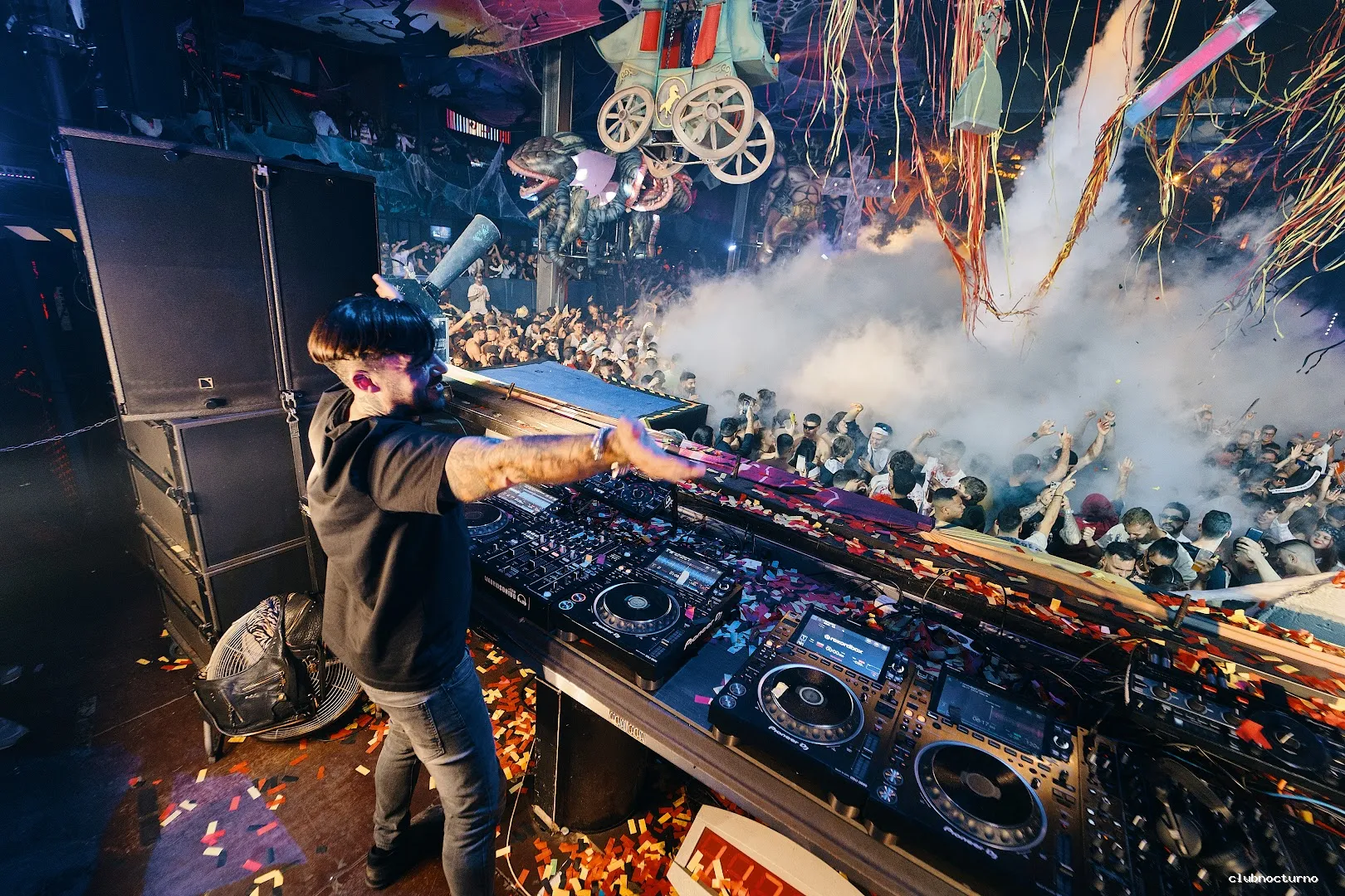 Sesiones de DJ hasta el amanecer amenizan este club con una enorme pista de baile, salas VIP y siete barras.