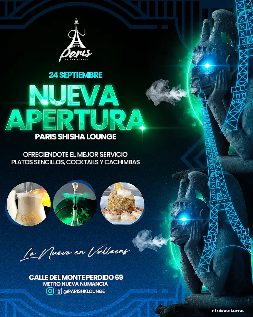 Exclusiva variedad de Shishas Premium, Tapas, picadera fria, Cubos, tragos, etc.