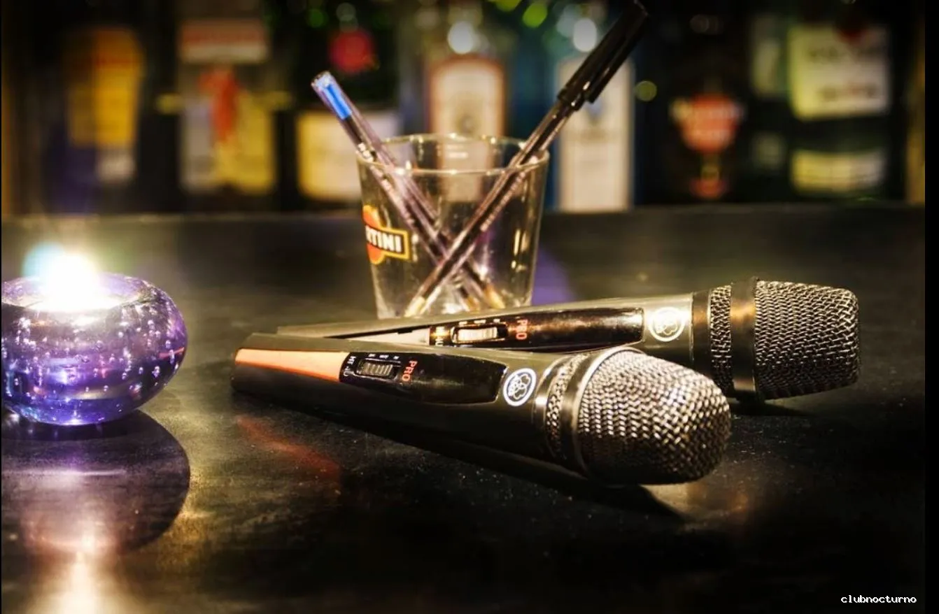 Amplio repertorio de canciones en un bar-karaoke con micrófonos inalámbricos y una sala para fiestas privadas.