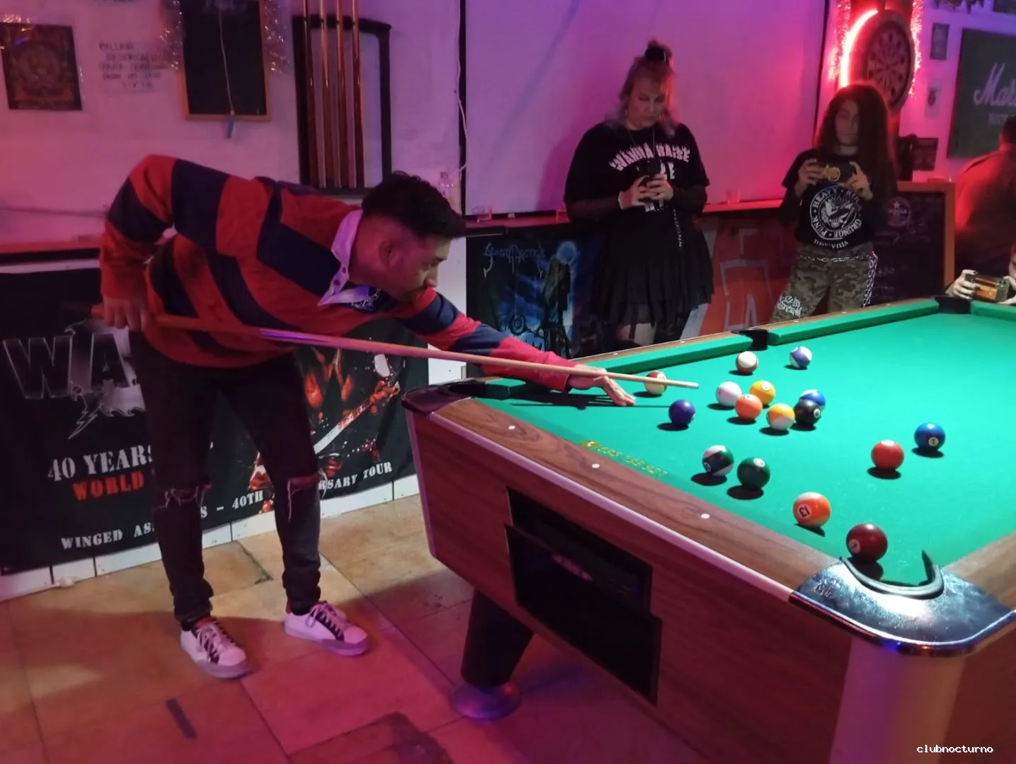 El servicio recibe elogios constantes: los camareros y el gerente son percibidos como atentos, amables y dispuestos a cuidar a los clientes, lo que genera una sensación de seguridad, especialmente para quienes acuden solos. Los propietarios aparecen como personas simpáticas y cercanas, lo que refuerza el vínculo con la clientela. En cuanto a la oferta de ocio, el billar y la mesa de futbolín son frecuentemente citados como los mejores de la zona, al igual que los dardos y la disponibilidad de una amplia selección de cervezas a precios competitivos. La comida, aunque no siempre probada, recibe menciones positivas cuando se menciona: los perritos calientes y los hot‑dogs son descritos como “únicos” y “deliciosos”.