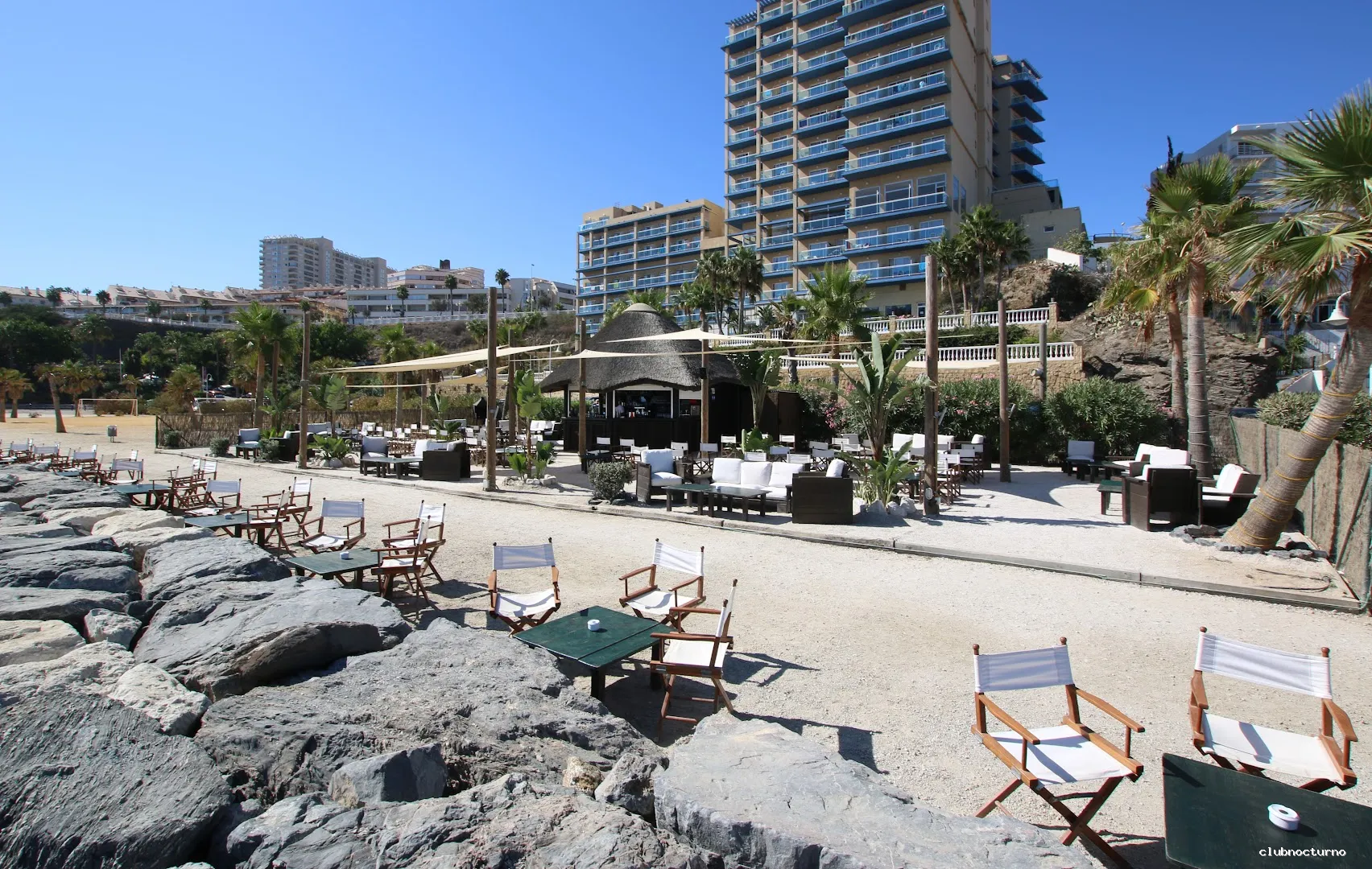 Chiringuito con terraza chill-out y zona de hamacas para degustar cafés, cócteles y copas frente al mar.
