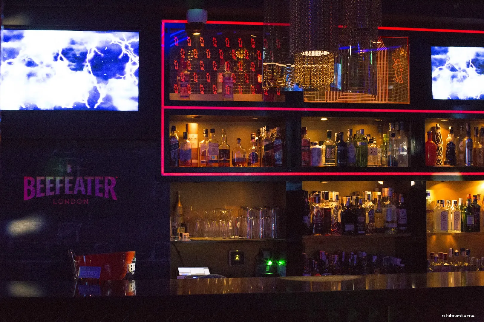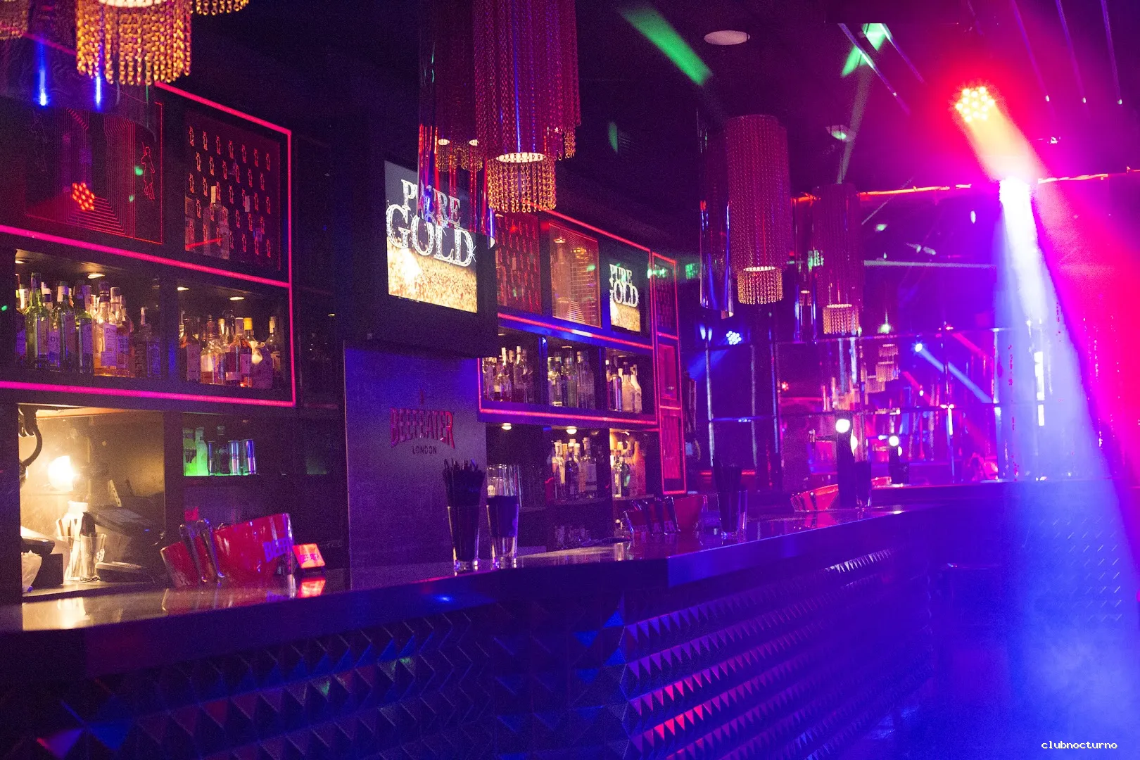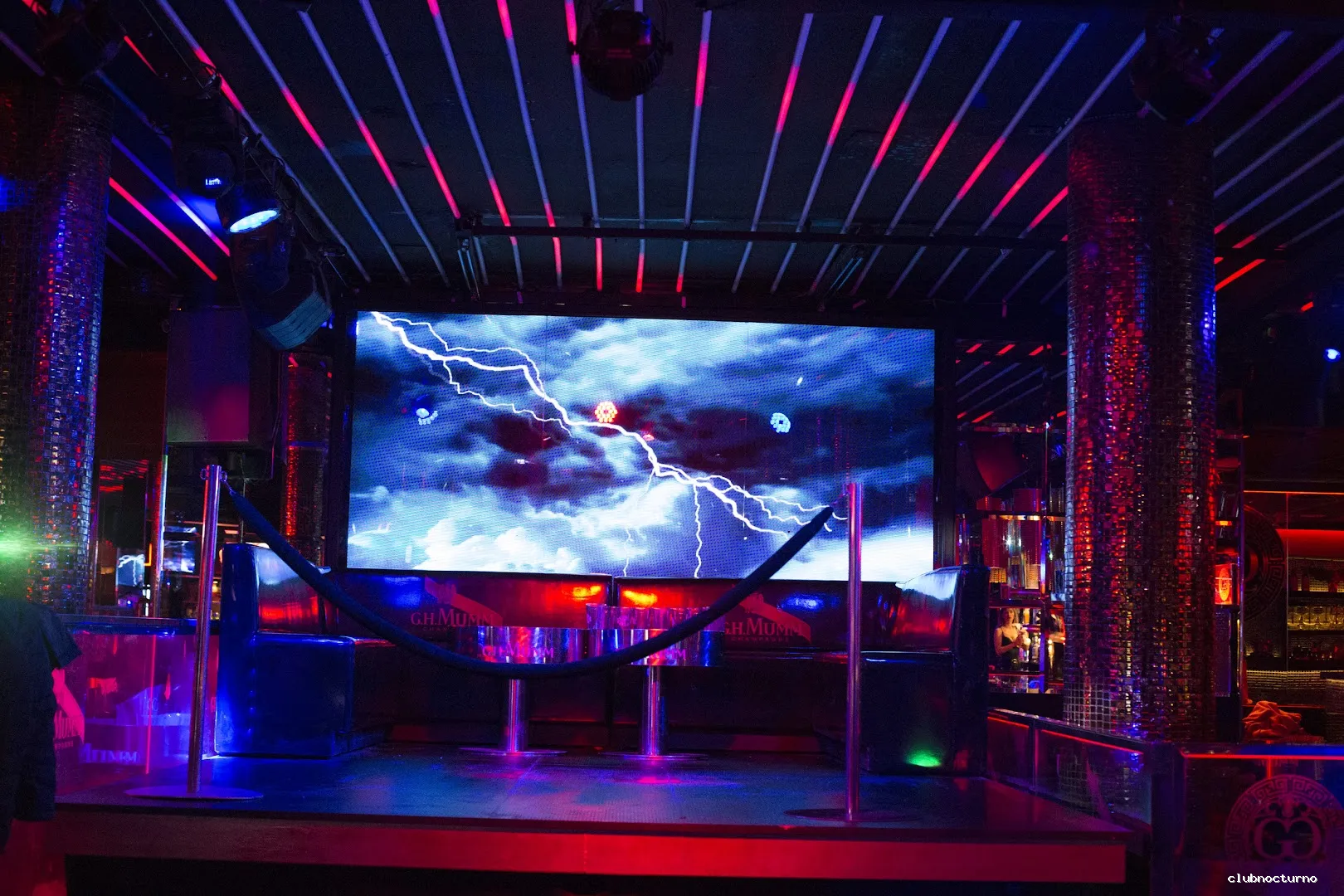 Cócteles, champán, fiestas temáticas y DJs en una elegante discoteca con elaborados juegos de luces.
