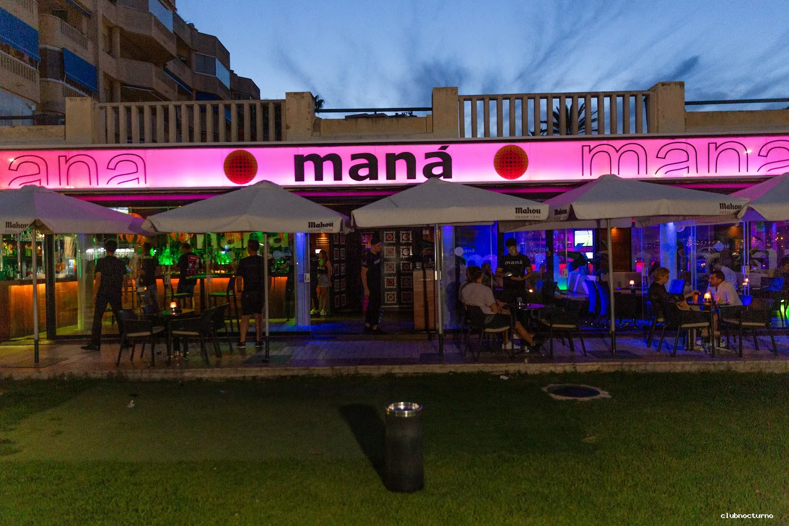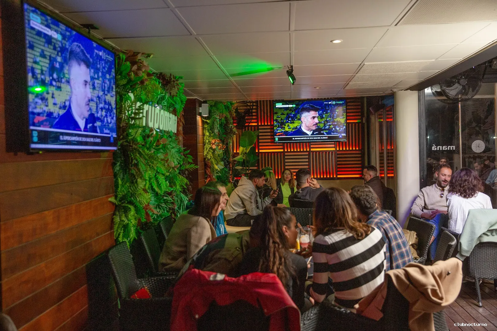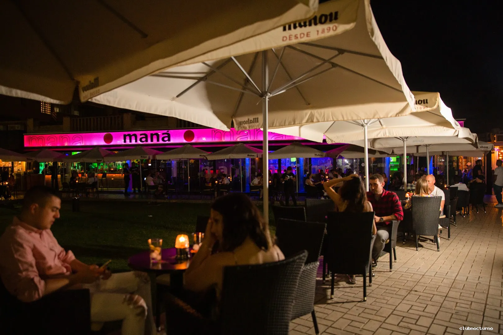 Lámparas brillantes y suelos de madera para una discoteca con cócteles elaborados y espectáculos de humor.